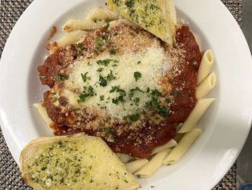 Whole chicken breast coated in Italian seasoned bread crumbs, topped with house marinara sauce & mozzarella cheese.